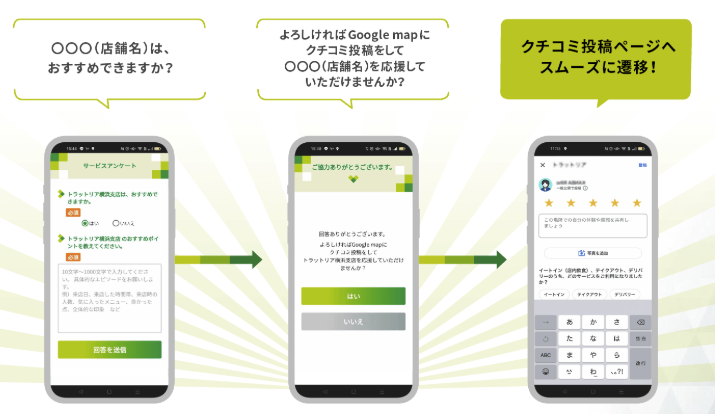 アンケートを使うことで口コミを書いていただく導線を確保し